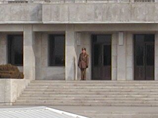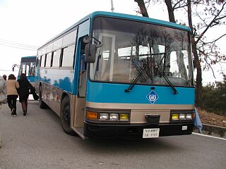 朝は近くのコンビニで買ったパンで済ませ、0830にロッテホテルの大韓旅行社へ行きツアーの手続き。バス2台で板門店へ向かう
