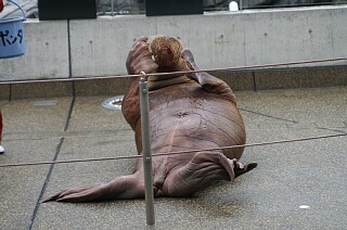 雨が降り出したので、山を降りて海側にあるうみたまごへ。なかなかよくできた水族館。たまたま、パフォーマンスショーに遭遇。セイウチがなかなかおもしろい。ついでに、セイウチとアザラシに触ってくる。