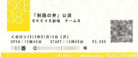 前回のキャンセル待ちからきっちり一ヶ月後に当ててくるので、NMBと同じ一ヶ月待機なのかという気もするが、なにも休日のS公演とか倍率の高いのを当ててくれなくても、平日のE公演でいいのだが。