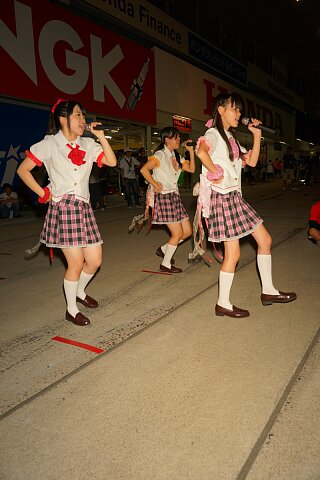 適当に時間を潰してナイトピットウォーク。ライブやってたのはdelaと放課後ラブレターというココロモヨヲ(名古屋のローカルアイドル)の妹分。他にはエヴァが浴衣仕様。