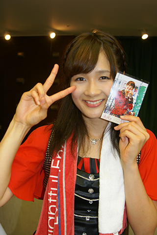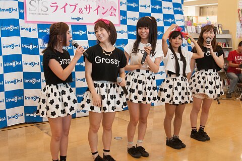 メンバーは7名のはずだが、ステージに出てきたのは土方、犬童、臼田、高野、深見の5名。3名(土方、犬童、臼田)が元OS☆Uで1名(深見)が元LOVEINA30という。2曲めで深見が水野と入れ替わる。後で確認したところ、リザーブメンバーだからということだった。ステージに出て来なかった増田は後のサイン会のときに来ていたので、単純に間に合わなかったのだろう。