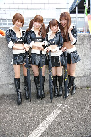レースクイーン(現地組除く)は、確認できたのは#6(2名)、#18(1名)、#23(2名)、#35(1名)、#38(3名)、##39(2名)、#100(1名)、#3(1名)、#5(3名)、#7(2名)、#11(3名)、#19(1名)、#31(2名)、#33(3名)、#666(1名)。あと#7に小林梨沙含む4名がついていたが、これはどういう関係かわからない。"SG CHANGI PTE.LTD."とあるのでシンガポールの企業だろうが。その他はG☆RACEからマレーシア派遣組の2名。ということで、不明の4名を足してなんとか昨年並というところ。