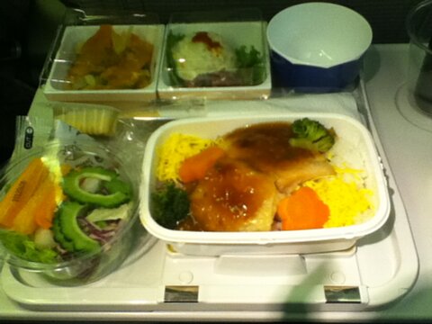 国内線カウンターに行って荷物を預け、国内線待合室へ。JEXの機材のせいか珍しく乗機がバス。駐機している飛行機のそばを通って行くので飛行機マニア的には垂涎かも。しかし、行きは3クラスの国際線機材だったのに、帰りはビデオはおろかイヤホンが昔の空気の737。